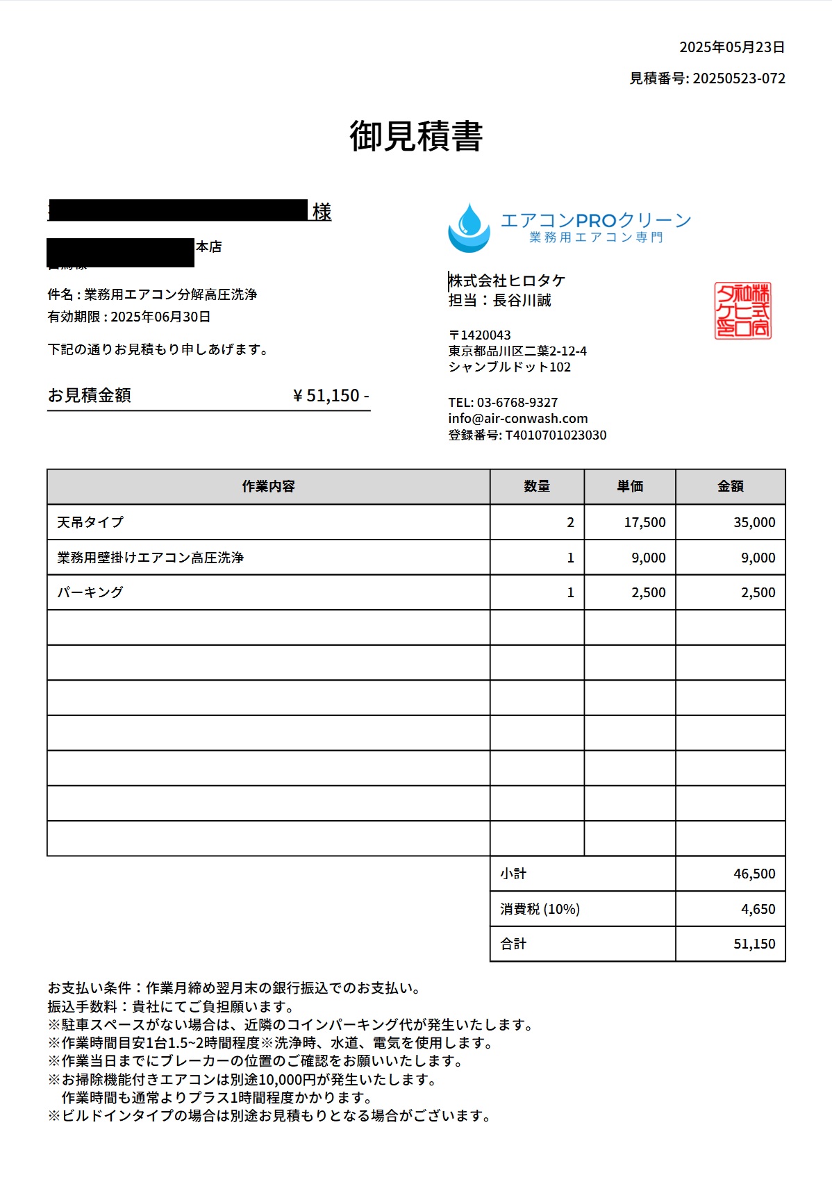 ・作業月:2025年5月 ・現地調査:なし ・洗浄台数:3台 ・作業日数:1日日 ・作業人員:2 ・作業時間帯:早朝