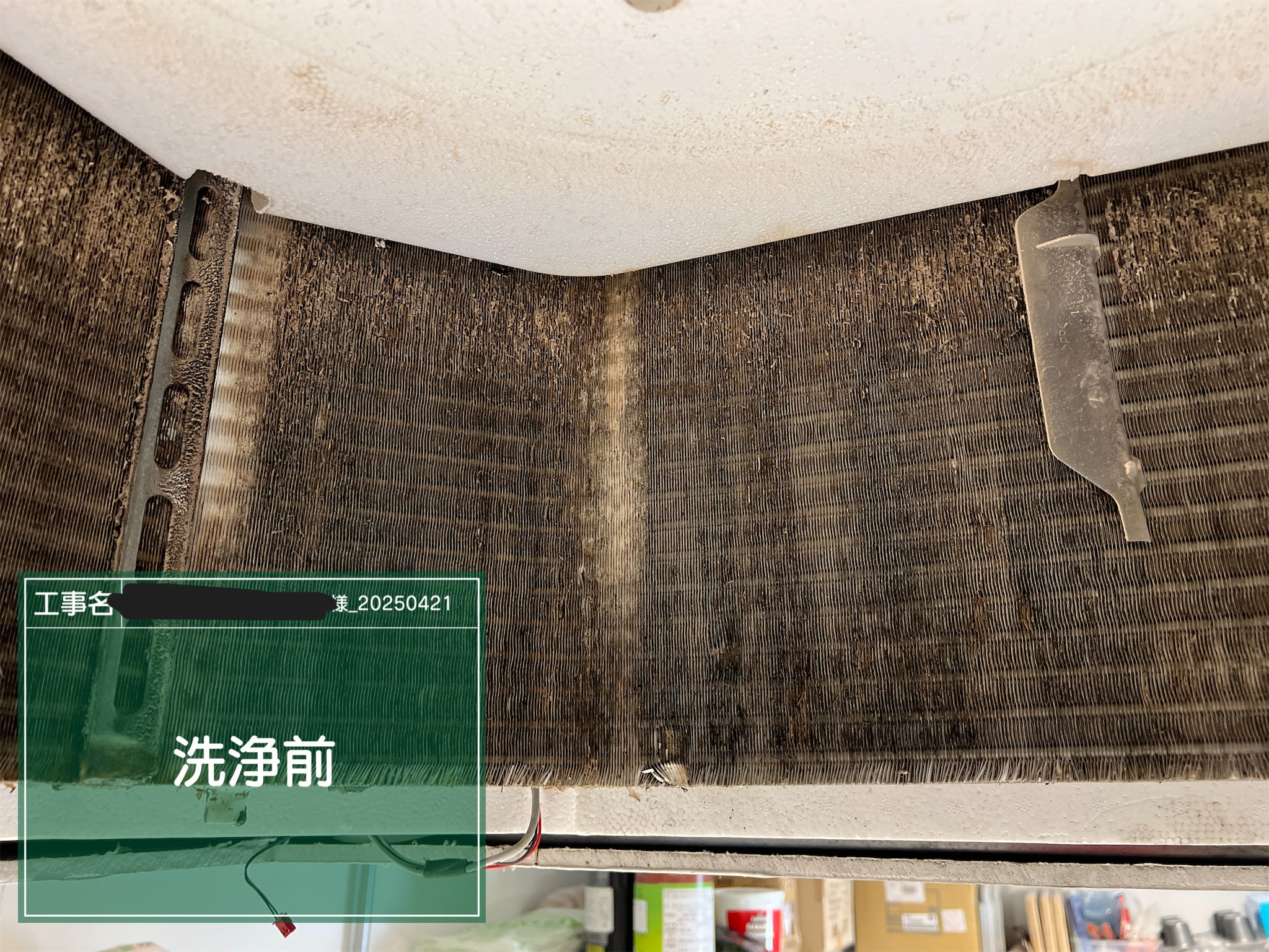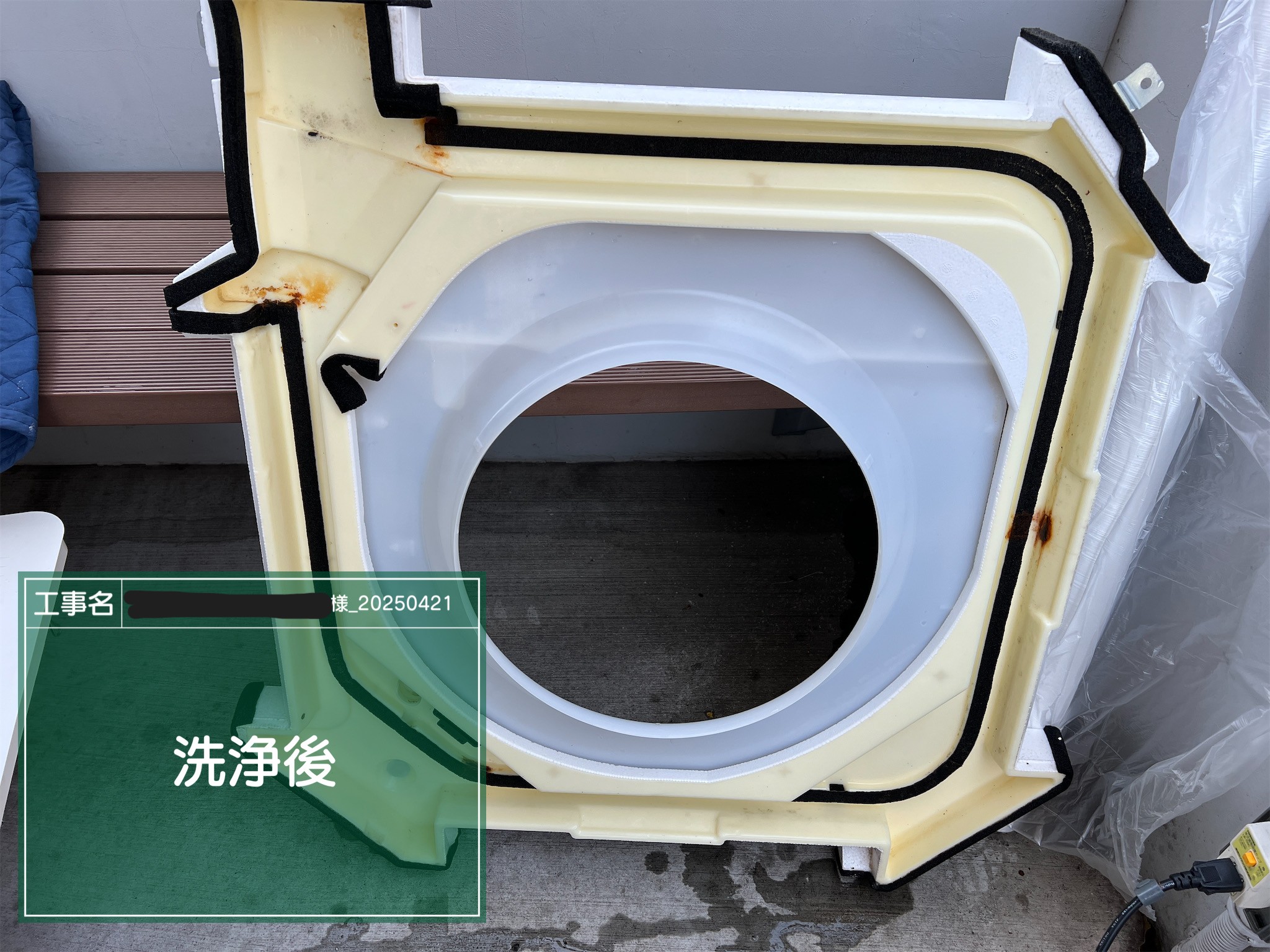ドレンつまりが見受けられたため、ドレンポンプ清掃、ドレンホースのバキューム清掃を行いました。