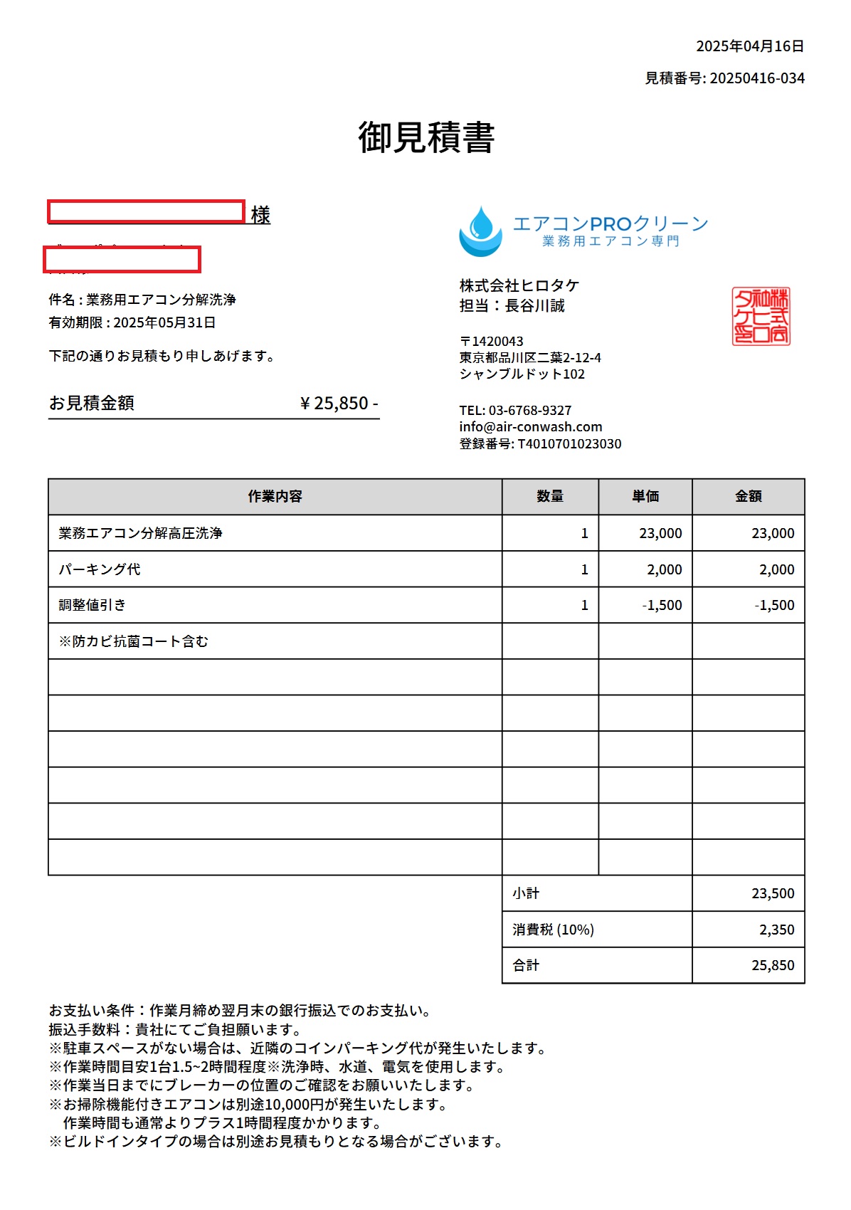 実際のお見積内容