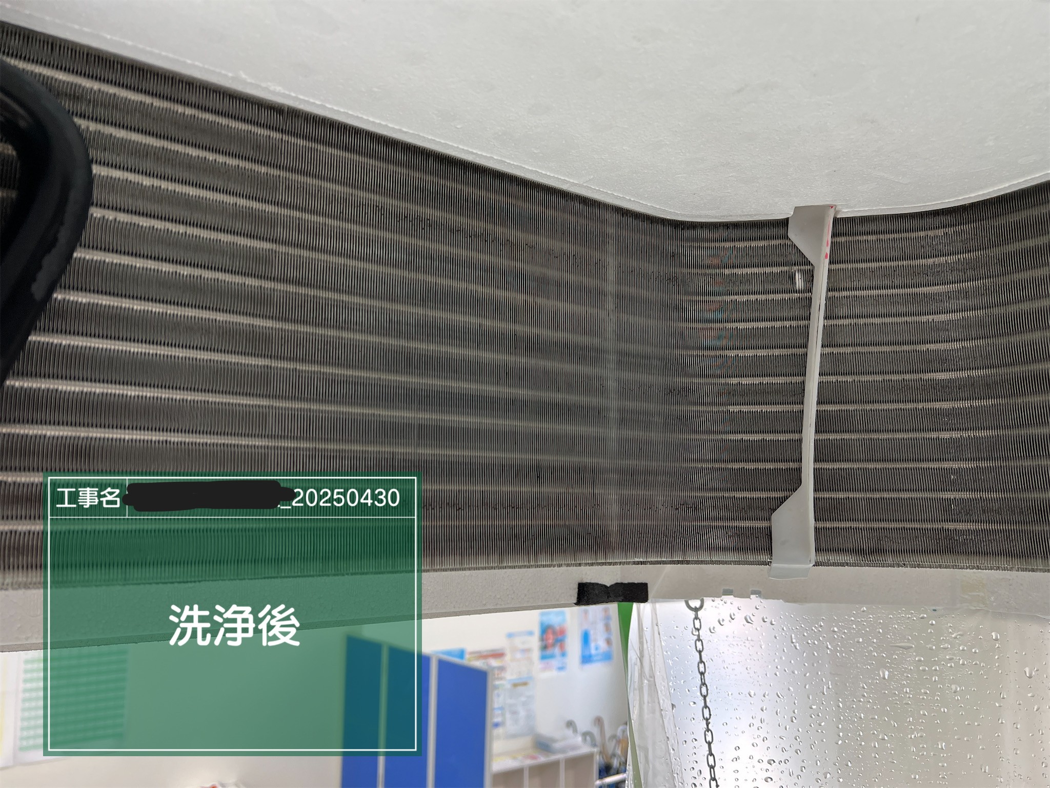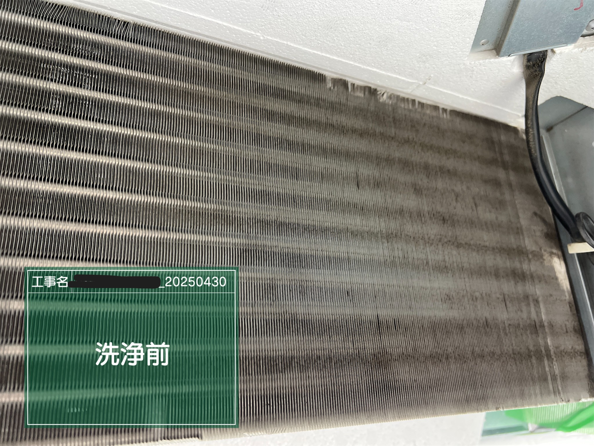 稼働時間は一般的な業務エアコンより短い時間の為、放置年数のわりに比較的綺麗な状態でした。