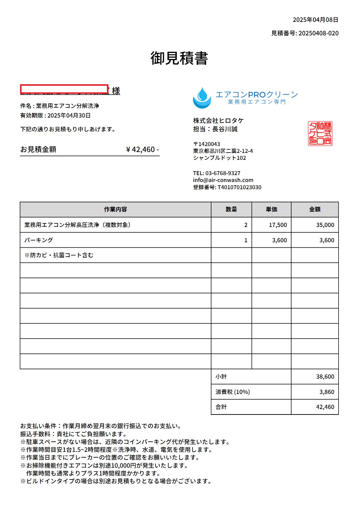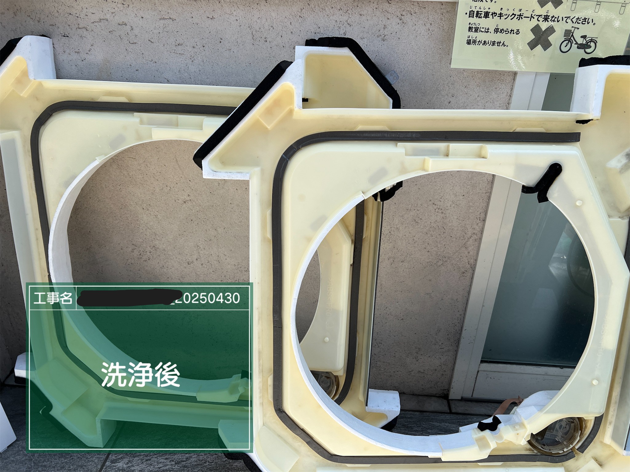 ・現地調査:なし ・洗浄台数:2台 ・作業日数:2.5時間/日 ・作業人員:1人 ・作業時間帯:日中