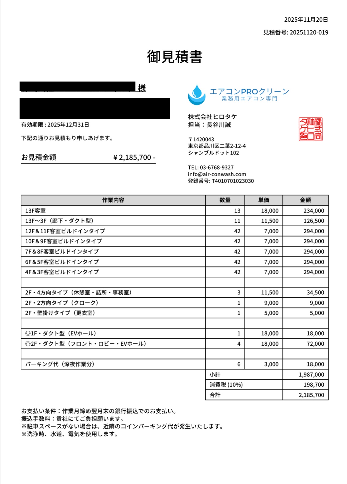 ホテル・宿泊・シェアハウス:業務用エアコン清掃【中央区】
