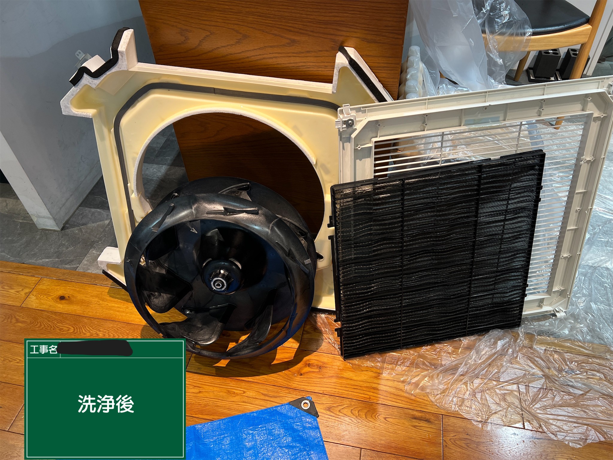 繁華街店舗の為、洗浄槽持ち込み店内に出部品洗浄を行いました。 定休日での対応の為、お立合いにて店舗開錠、作業終了後は既定の場所に鍵返却での対応となりました。