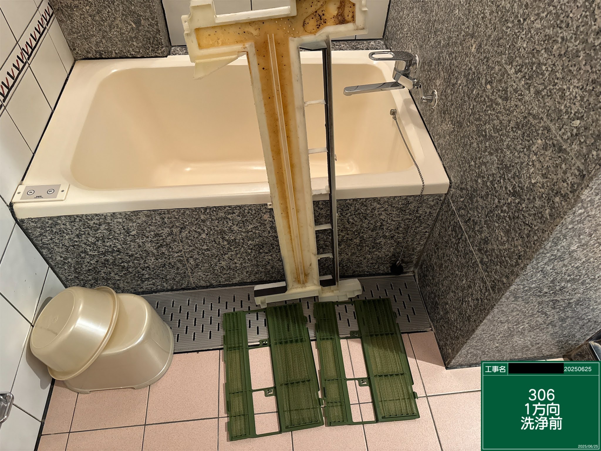 客室は11:00~16:00までの間での作業となりました。 共有は夕方18:00まで作業可能でした。 パーツ洗浄には浴室とエントランス脇の場所を使用しました。 設置から25年経つものがありましたがトラブルなく作業いたしました。