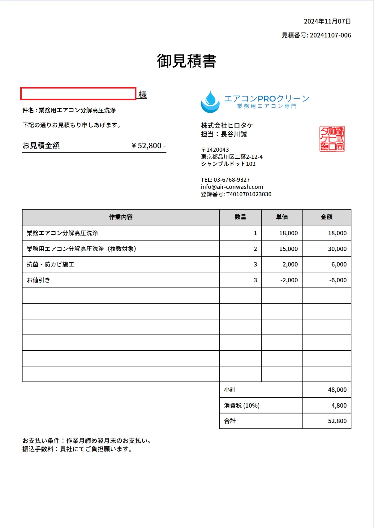 ・現地調査:なし ・洗浄台数:3台 ・作業日数:3時間/日 ・作業人員:2名人 ・作業時間帯:日中